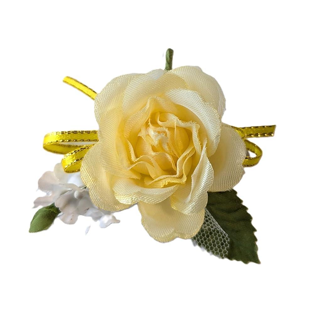 Amazon.co.jp:ファミリアDR 造花 子供 完成品 コサージュ 手作り 咲きバラ cs-9-02 イエロー 花飾り 胸飾り 入園式 卒園式入学式 卒業式 イベント 発表会 : ホビ。