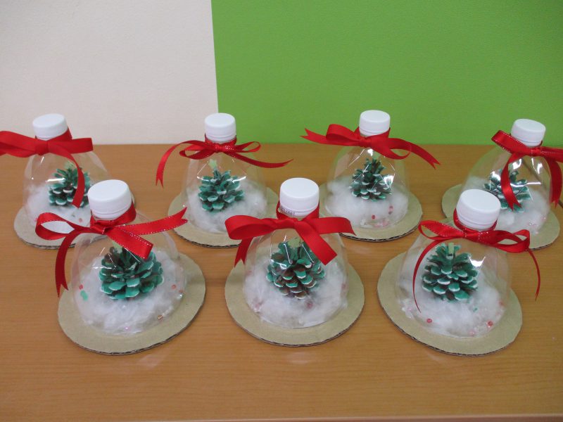 保育園 12月 冬の製作 まつぼっくりクリスマスツリーのスノードーム保育士のお仕事静岡。