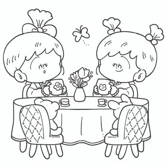 おままごとをする女の子のフリーイラストフリーイラスト・クラシック フリクラ。