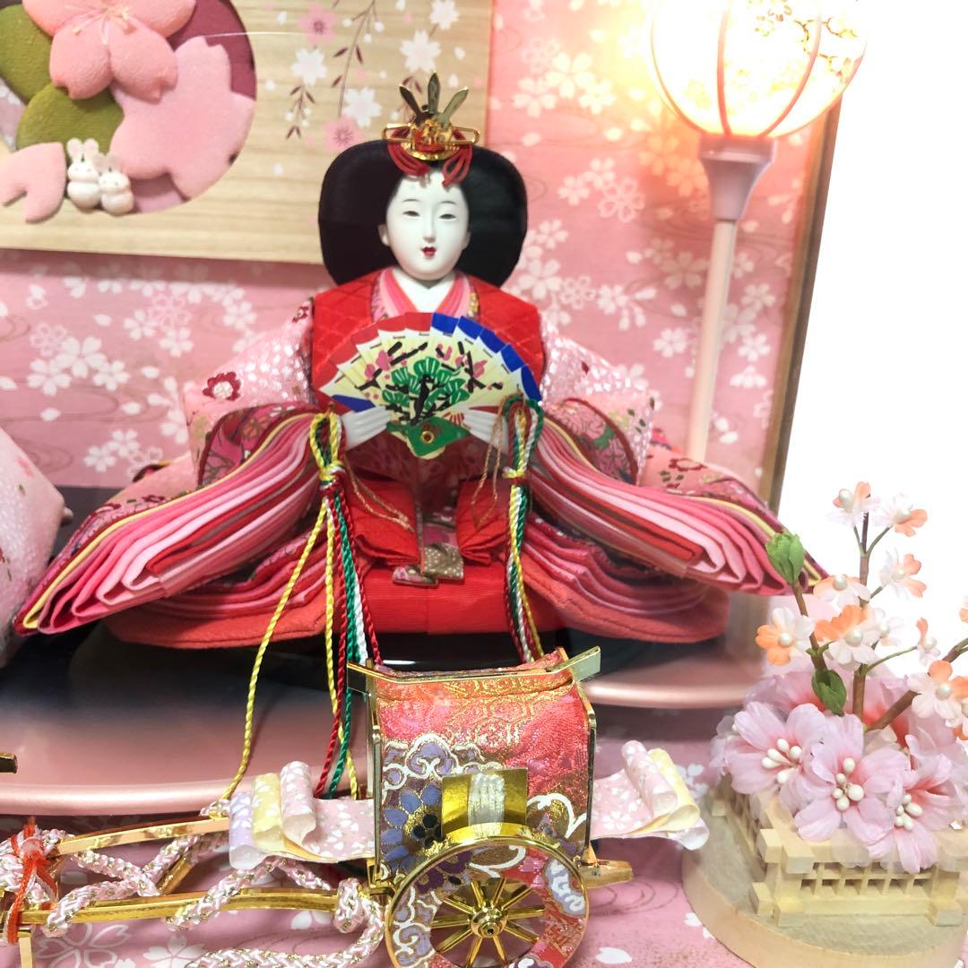 雛人形ケース入り飾りセット P87303 インターネット店だけ☆限定販売縁起の良いうさぎがピンクケースにピッタリ♪三人官女も素敵☆職人手作りの 秀光人形工房 五月人形・鯉のぼり・おひなさま人形工房。