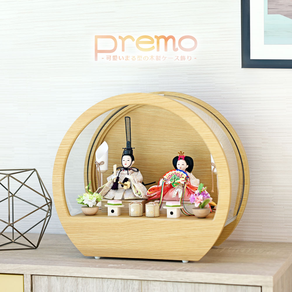 雛人形 コンパクト 白 ケース入り 横幅39cm ひな人形 ケース飾り 親王飾り かわいい おしゃれ 北欧風 小さい お祝い 初節句 雛人形コンパクト Premo mini プリモ ミニ丸型木製ケースミニサイズ雛人形 コンパクト おしゃれ恵月人形本舗。