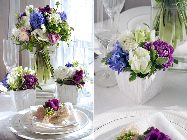 スタイル別 会場装花春・紫&白:スプリングバイオレット Spring VioletFlowers by kukka designクッカデザイン札幌&東京・花屋。