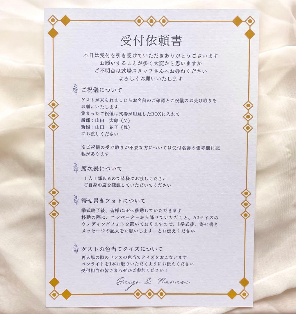 今どき挙式の新常識アイテム「受付お願い書」作ってみた!無料テンプレ有 - おしゃれな結婚式小物が何でも揃う通販サイト ファルベ。