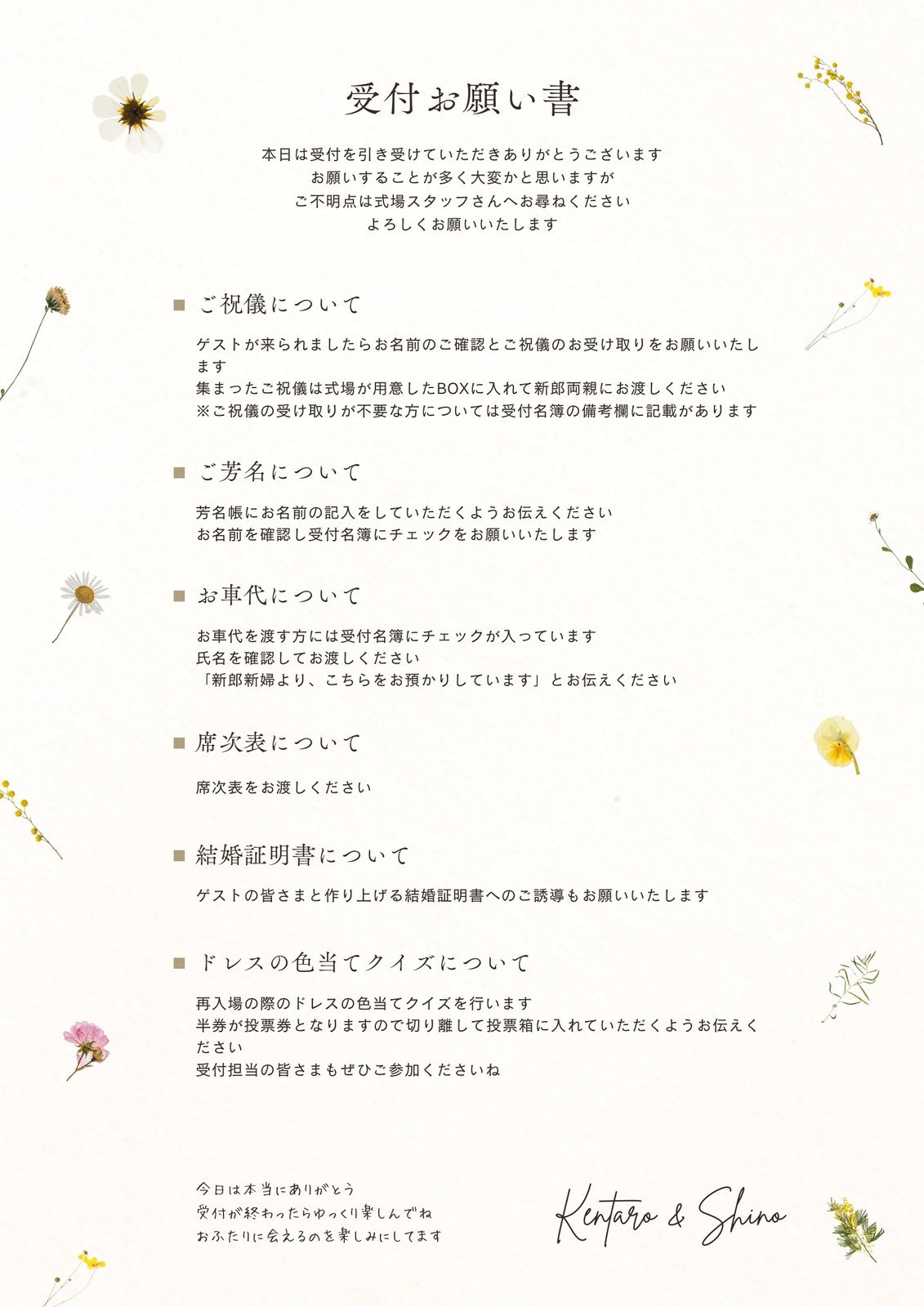 結婚式 受付指示書 テンプレート その他ペーパーアイテム chika 通販 16708134Creema クリーマ。