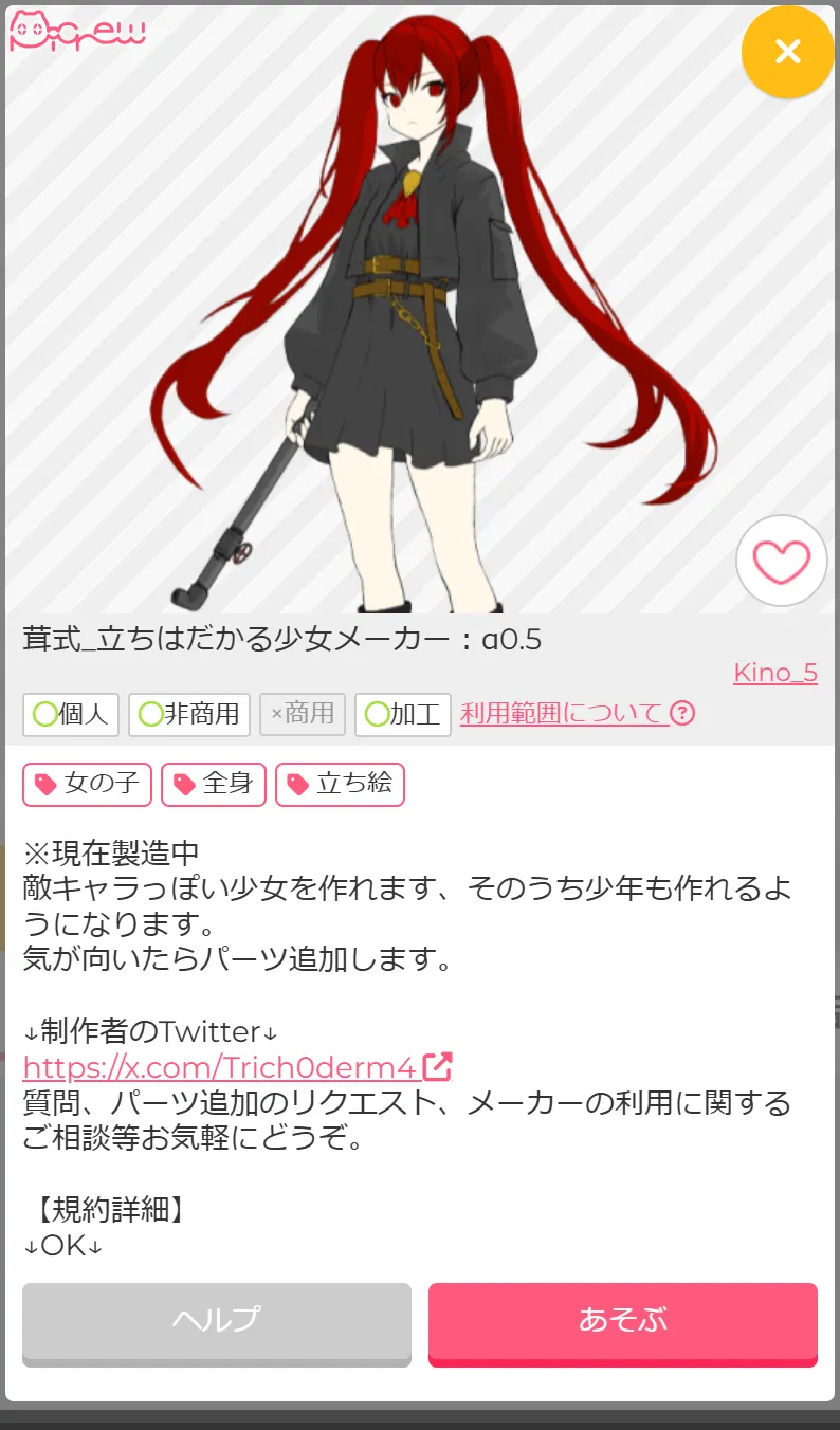 TRPG全身立ち絵。Picrewさんで商用非商用含めたフリー「全身立ち絵」まとめと、Picrewの規約の概要まとめ記事。サザノノポートフォリオ。