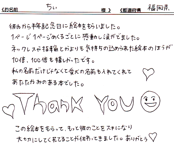 彼氏へ半年記念日に贈るメッセージ例文オリジナル絵本ギフト専門店 ありがとう。