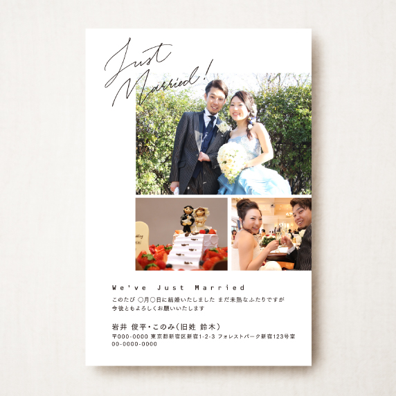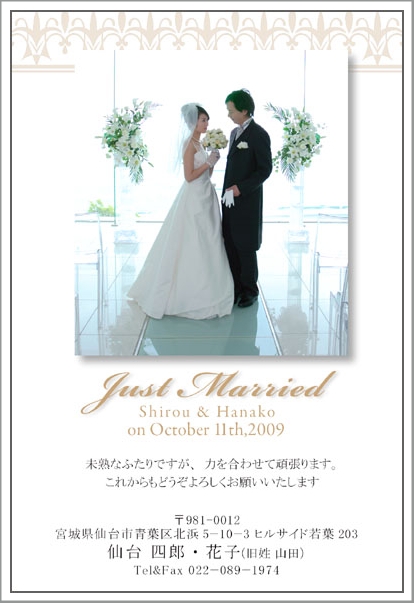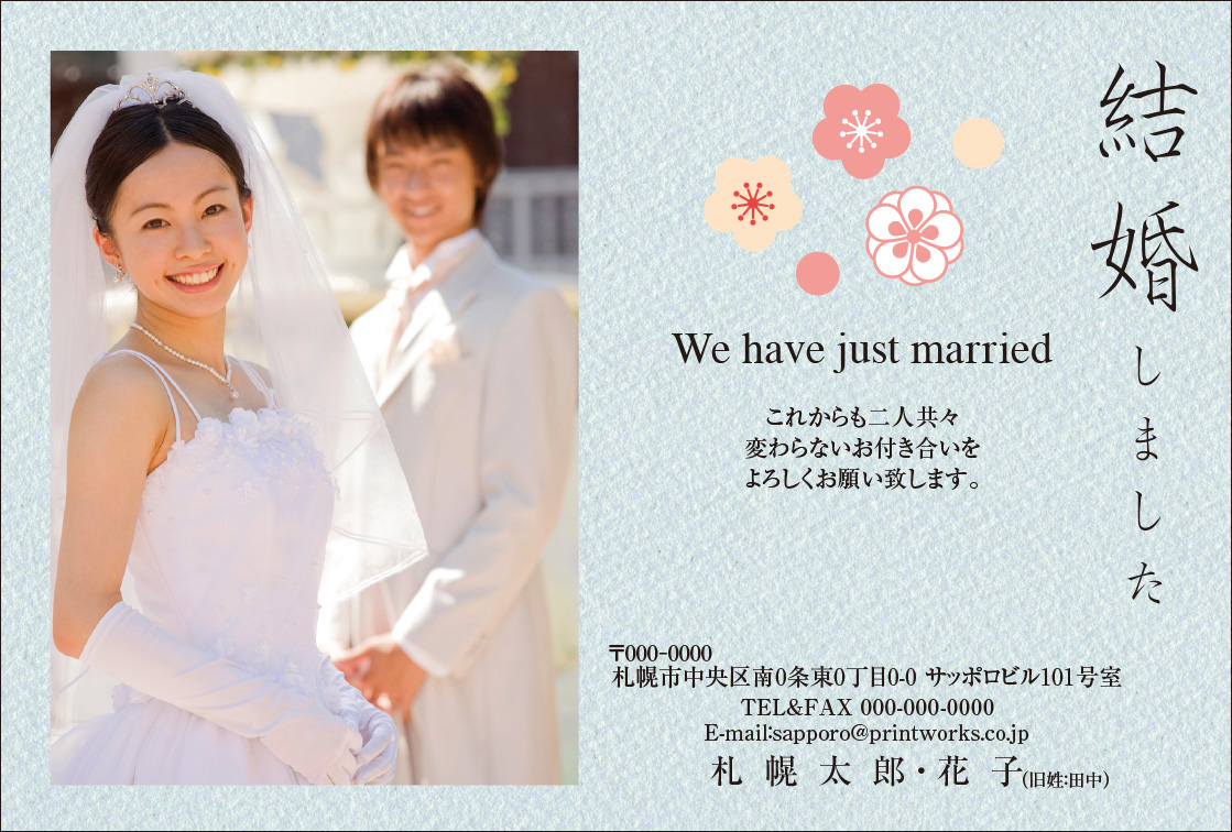 結婚のお知らせ 01結婚報告はがき挨拶状はがき印刷から投函まで「まかせて楽チン」ウェブポ。
