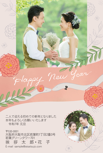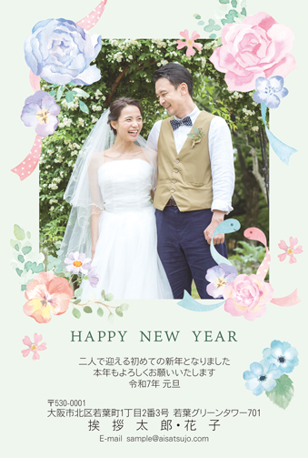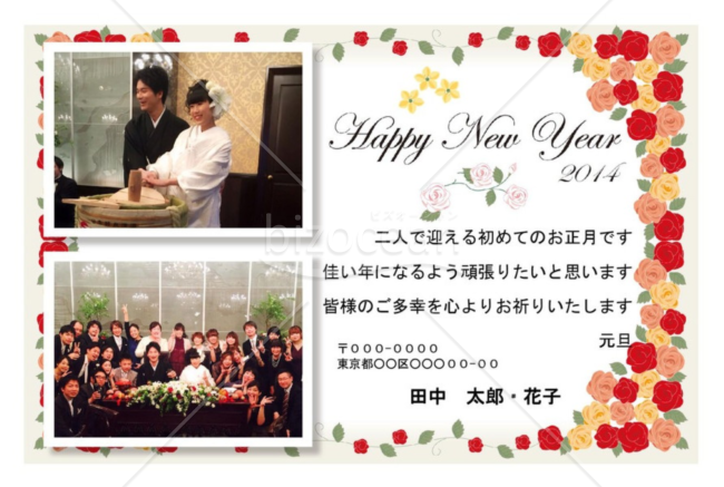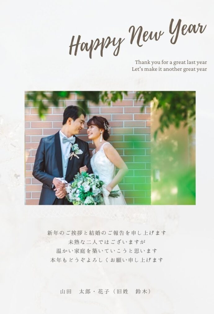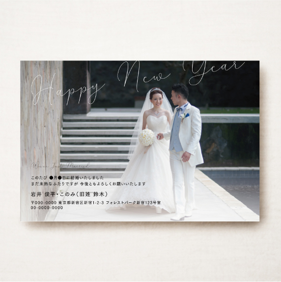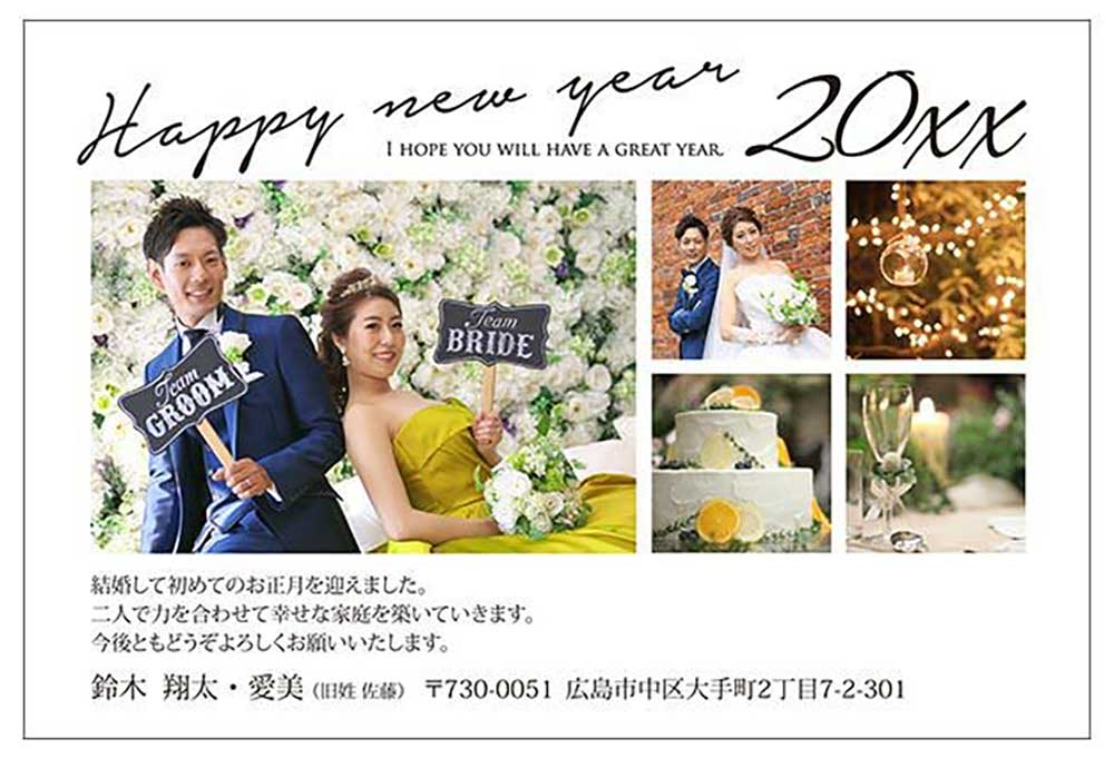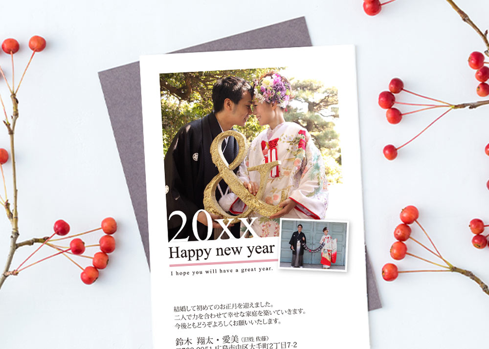 結婚報告の年賀状 文例と写真の入れ方 - ネット印刷は 印刷通販@グラフィック。