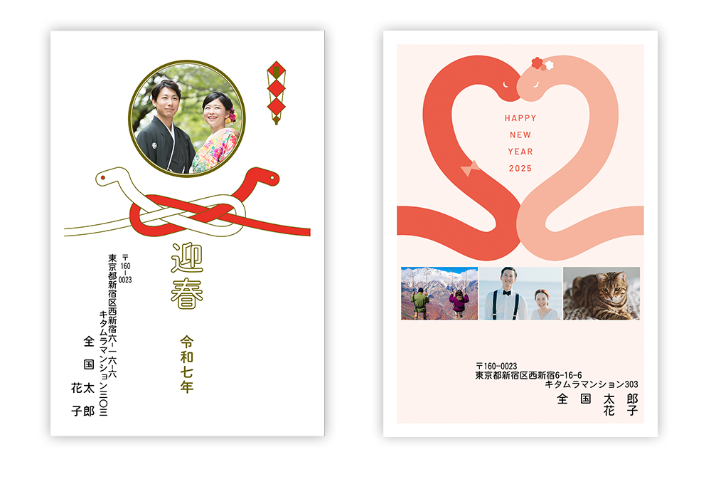 結婚報告 写真入り年賀状デザイン一覧カメラのキタムラ年賀状2025巳年。