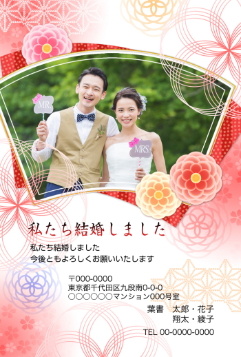 結婚報告はがき 無料テンプレート Andante 商用利用可和風 洋風 フォトフレーム テンプレート 文例。