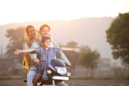 バイクに乗って幸せな田舎のインドの家族の写真素材・画像素材 Image 162176208。