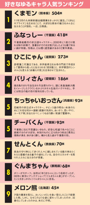 熊と梨が激突、全国ご当地ゆるキャラ人気ベスト20 - 日本経済新聞。