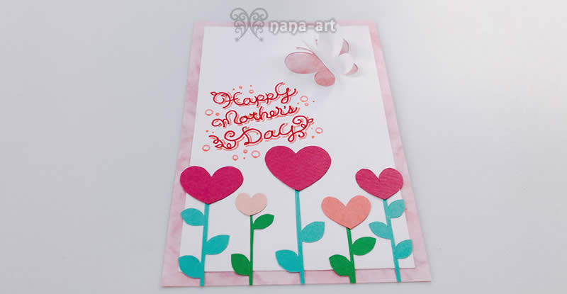 母の日 手作りカード 蝶々とハートのお花ななのポップアップカード。