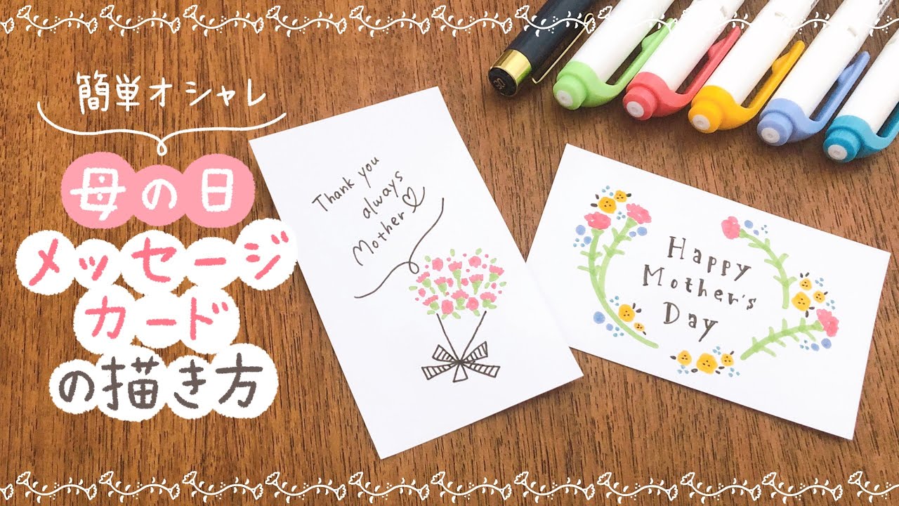簡単おしゃれ 母の日手作りメッセージカード手描き カーネーション マイルドライナーHow to draw mother's day cardideas easy and cute。