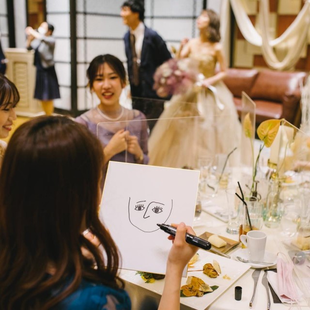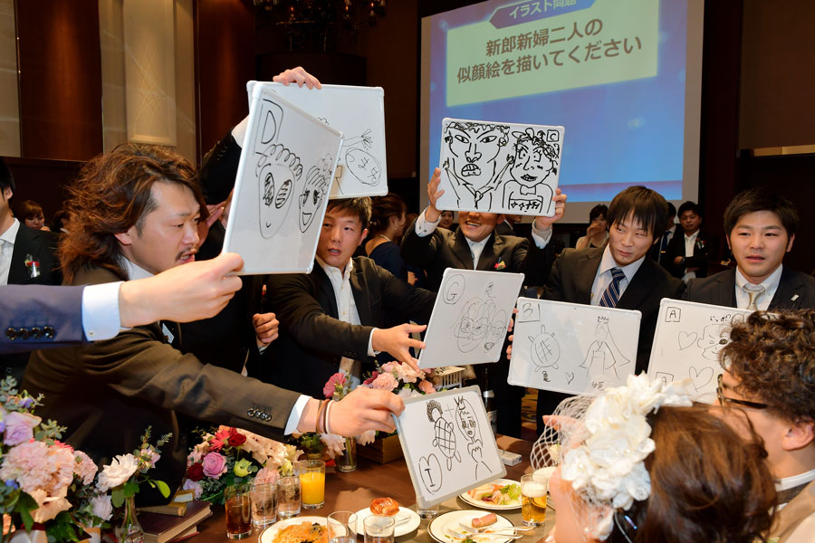 披露宴の出し物は、テーブル対抗「似顔絵ゲーム」が盛り上がるmarry マリー。
