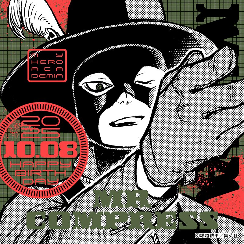 僕のヒーローアカデミア公式 on X: " HAPPY BIRTHDAY Mr.コンプレス🎉本日10 8はMr.コンプレスこと、迫 圧紘の誕生日🎂その誕生日を記念して、 バースデーアイコンを作成しました❗ 機敏な動きと“個性”でヒーローを翻弄する 飄々としたエンターテイナーだが、 仲間。