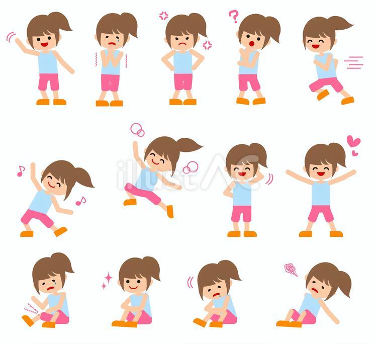 元気に遊びまわる女の子ポーズ集のイラスト素材57110985- PIXTA。