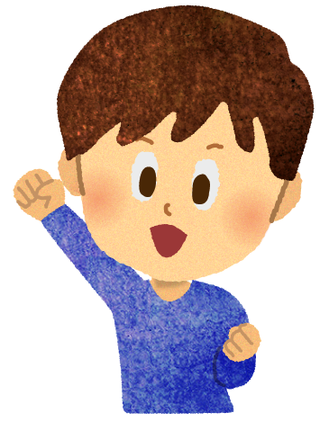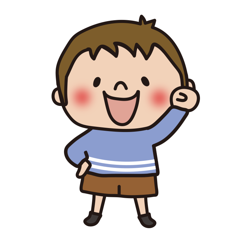 ガッツポーズをする子供 男の子1 の無料 フリー イラストかわいい手描きの無料素材「てがきっず」保育園・小学校・介護施設にぴったりのフリー素材 イラスト。