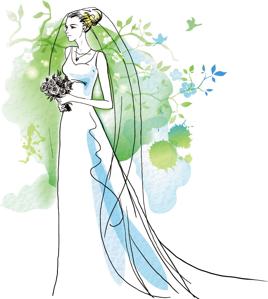 結婚のイラストNo.111『ウェディングドレス姿』 無料のフリー素材集 花鳥風月。