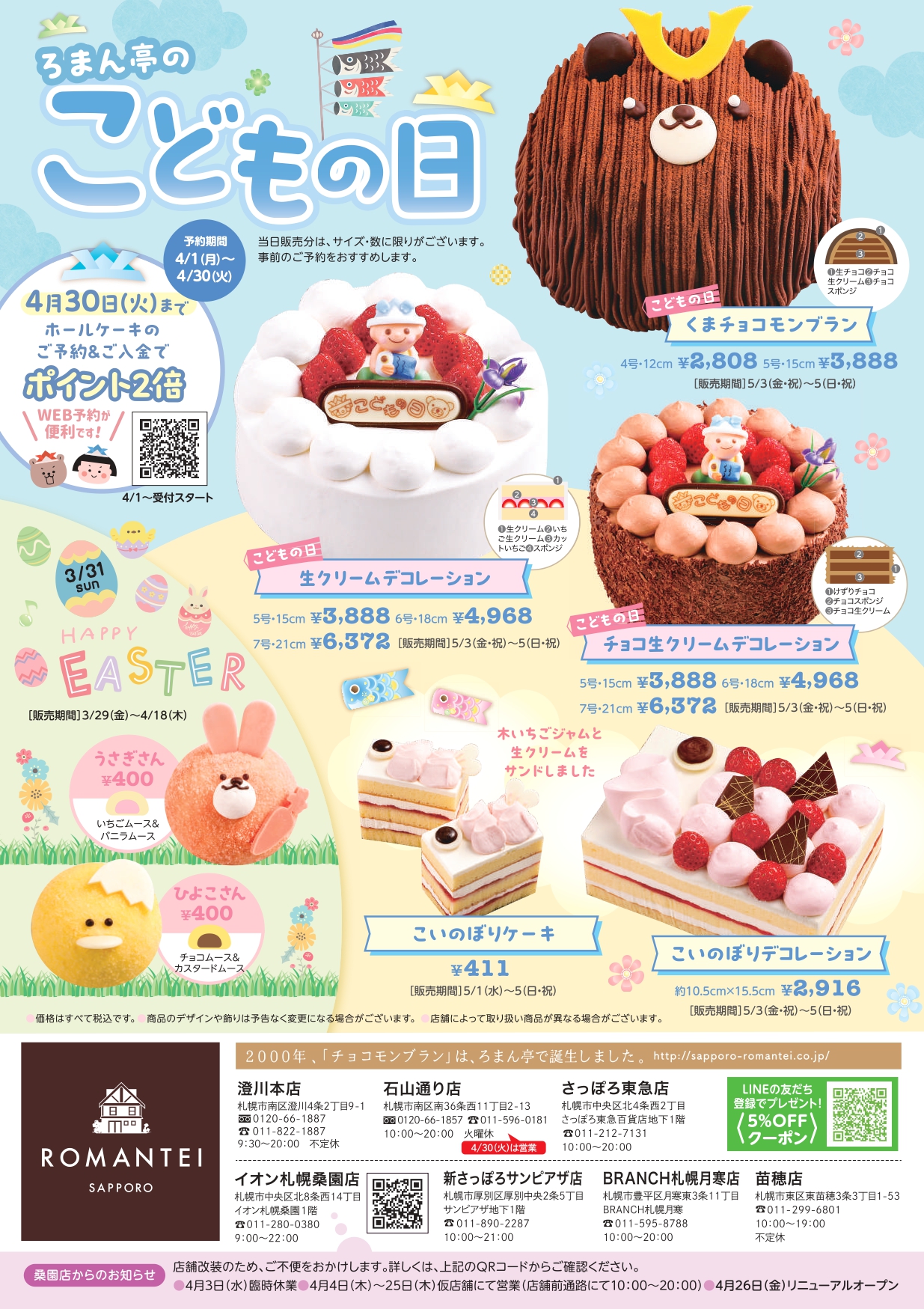 2025年 こどもの日・母の日ケーキご予約承り中!morimoto もりもと ーその美味しさは、北海道の恵みから。