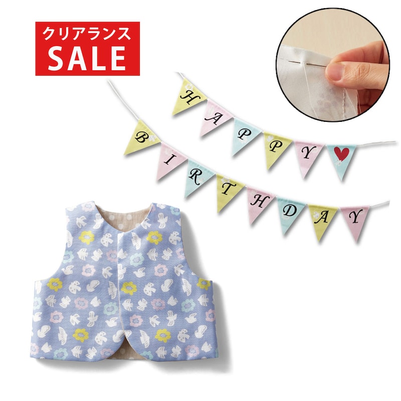 クリアランス1回のみお届けベスト&ガーランド印刷済み!手縫いで簡単ベビー小物手作りキット くららぼ 通販のベルメゾンネット。