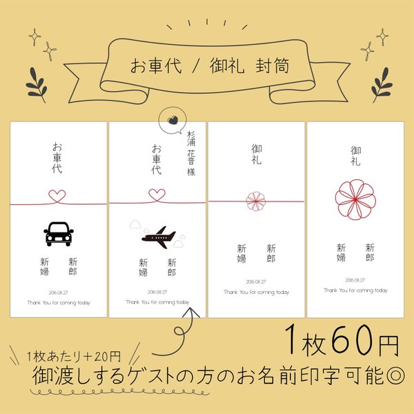 E結婚式 封筒 御礼 お車代 名前入れオーダー ♡ - Diy store YUK **minne byGMOペパボ国内最大級のハンドメイド・手作り通販サイト。
