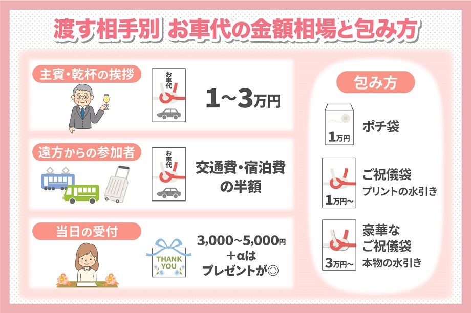結婚式のお車代 親族・親戚、友人への相場はいくら?金額の目安と渡し方のマナーを解説みんなのウェディングニュース。