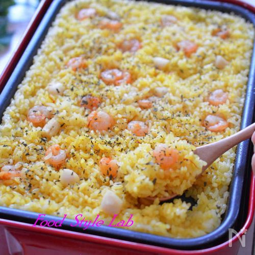 ホットプレートで簡単!子供と作れるシーフードパエリア♬。