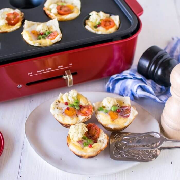お休みの日の朝、日周り目玉焼きはいかがですか🥰, とても簡単で可愛いですよ♡,ホットプレートレシピホットプレートbrunoレシピ。