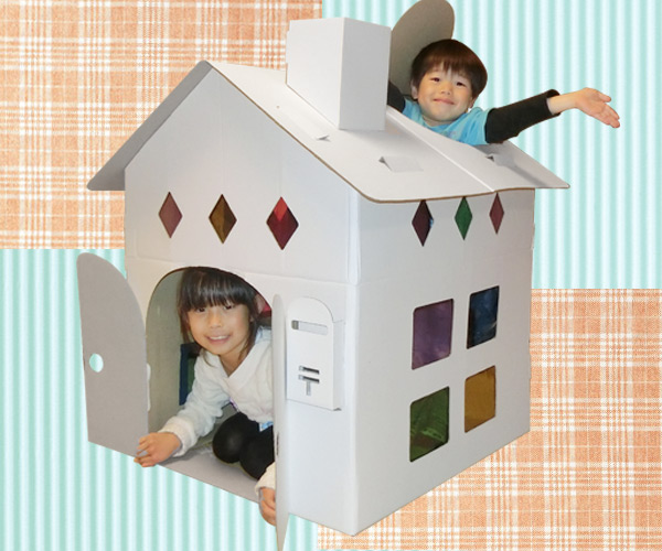 段ボールハウス」幼稚園、保育園で楽しみながら創造力を育てる!住宅展示場などの集客ツール! 段ボールから夢をカタチに!様々なサイズの段ボール 購入・防災に備える避難所生活グッズ 段ボール箱まくら・段ボールベッド&防災トイレ付等 製造見積販売有限会社。