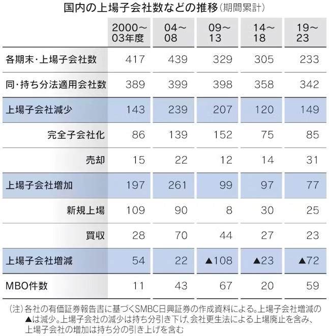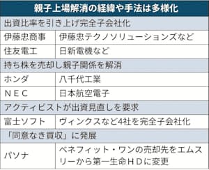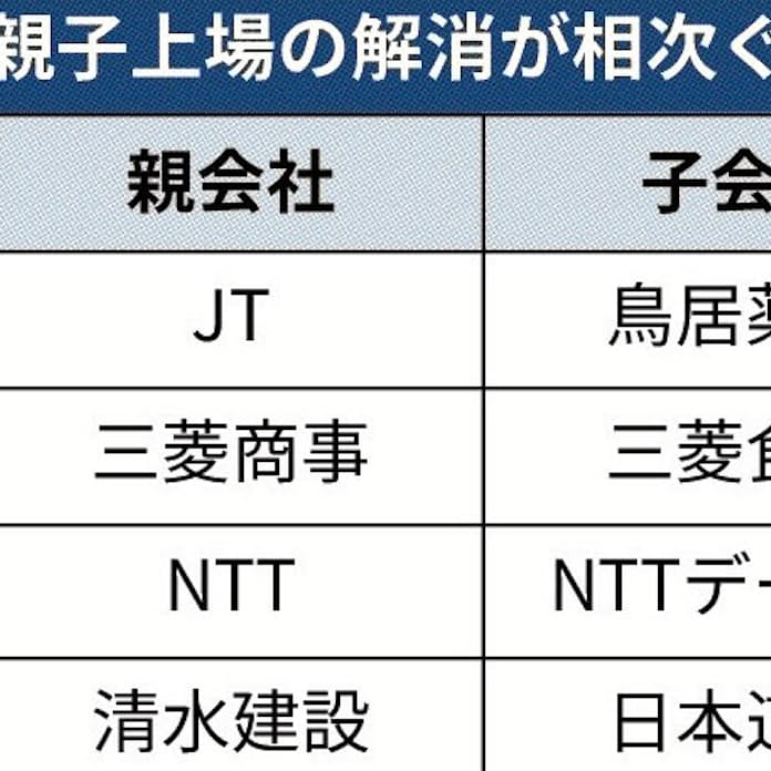 決算:親子上場の解消進む 36年ぶり低水準、企業統治改革が浸透 - 日本経済新聞。