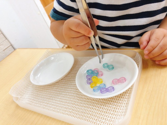 3歳6ヶ月~「ピンセット」のおしごとモンテッソーリほいくのたね。