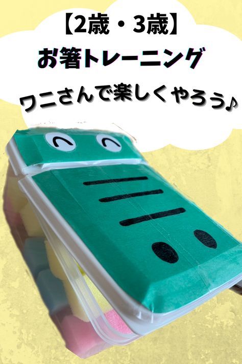 パクパクワニさん-トング遊びでお箸トレーニングをしよう!簡単に工作できるおもちゃだよ! - みたろうさんち。