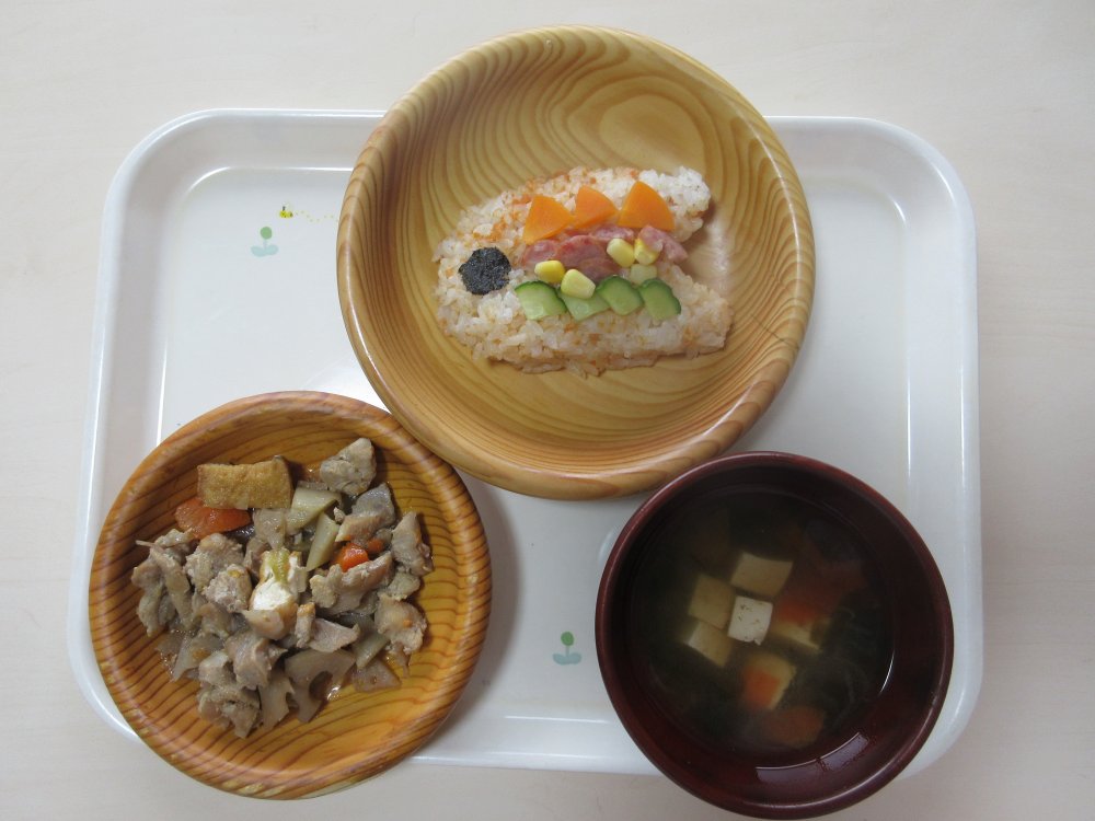 春のお楽しみごはん「ちらし寿司こいのぼり」おひさま保育園 盛岡市仙北町。