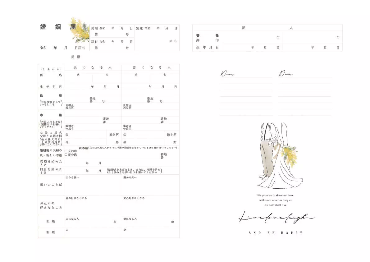 おしゃれな婚姻届を無料ダウンロード ハナユメオリジナルデザイン。