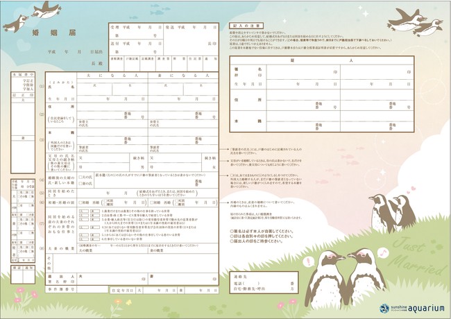 サンシャイン水族館オリジナルペンギン婚姻届 11月9日 木 より発売決定!一度ペア 夫婦 になると一生添い遂げると言われているペンギンたちがデザインされたサンシャイン水族館オリジナル婚姻届で入籍を!企業リリース日刊工業新聞 電子版。
