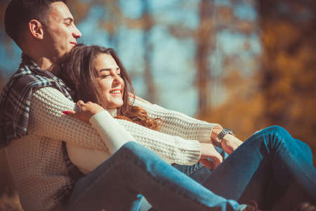 かっこいいカップルは、美しい秋の日を楽しみながら、笑顔で公園で楽しんでいますの写真素材・画像素材 Image 179958053。