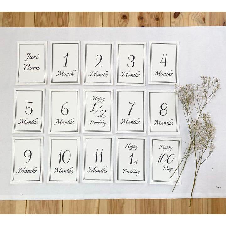 マンスリーカード15枚月齢カード月齢フォト赤ちゃんグッズ100日祝いハーフバースデーハガキサイズ。