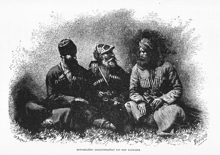 グルジア人、サーカシアン人、アルメニア人の人種 カラー図版。