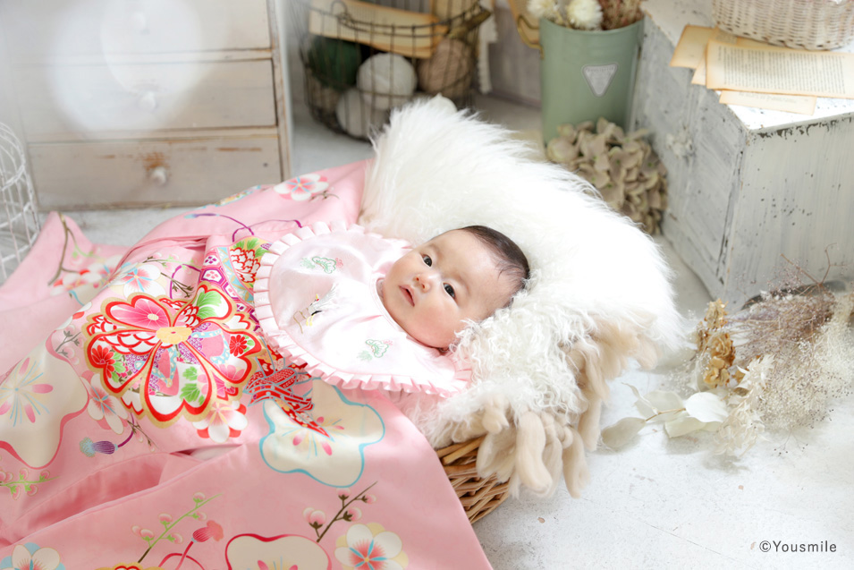 春のお宮参りお宮参り・百日祝い・赤ちゃん写真のフォトスタジオ・写真館はらかんスタジオ。