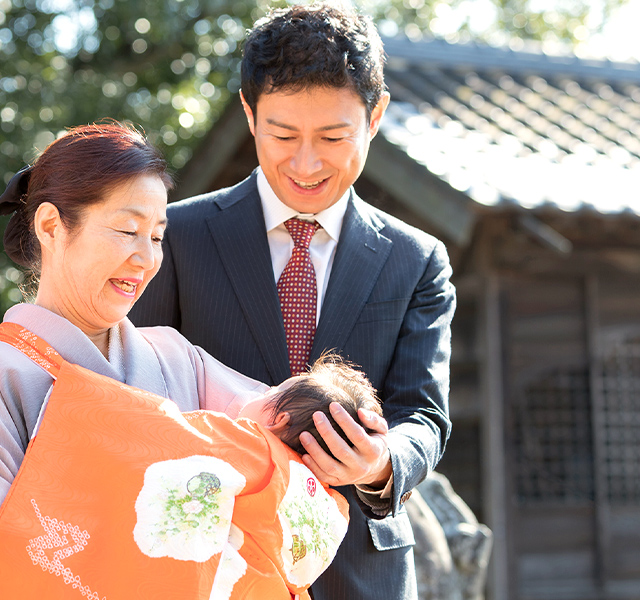 お宮参りの服装は?赤ちゃん・ママパパ・祖父母の服装選びのポイントやマナーフォトスタジオ ハピスタ 家族写真・子供写真・七五三。