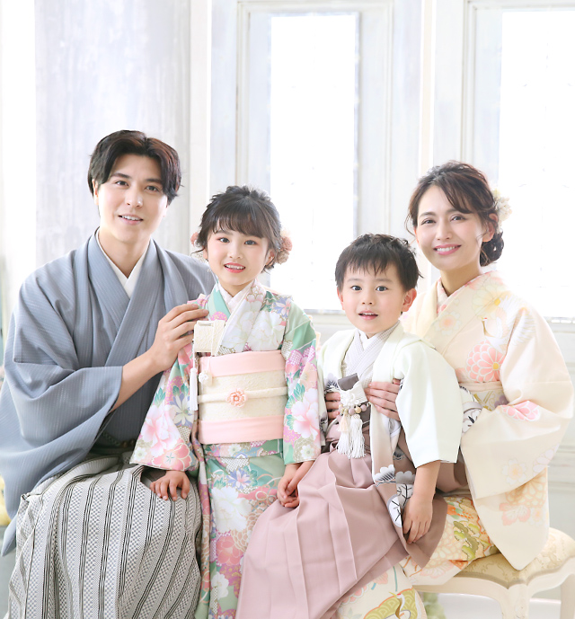 七五三の家族写真を着物で撮ろう!レンタル可能なフォトスタジオなら - ハピリィフォトスタジオ。