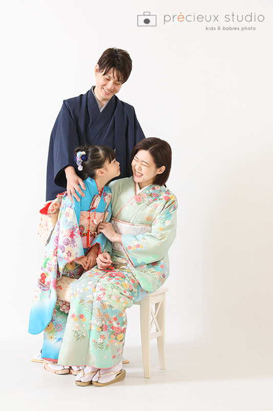 7歳の女の子の七五三記念写真撮影 和装で家族写真 店舗ブログプレシュスタジオ。