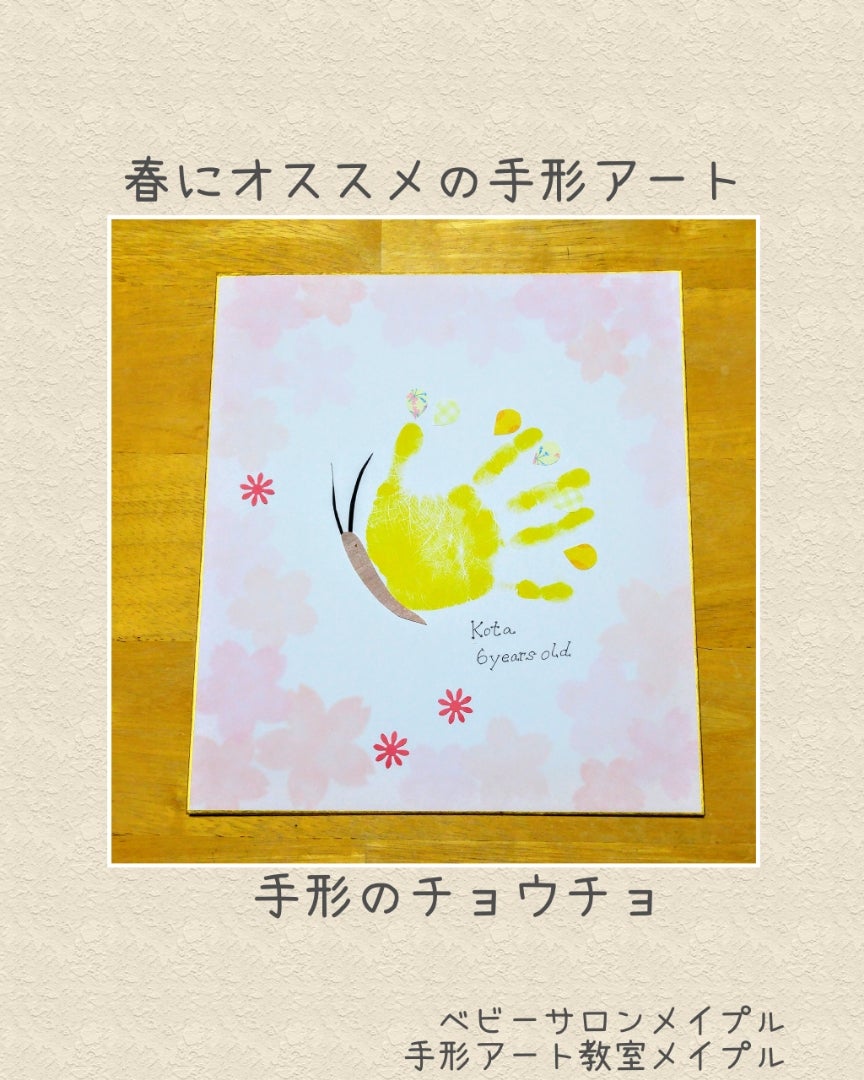 春にオススメ 手形のチョウチョベビーサロン メイプル 新潟市ベビーサイン教室、おひるねアート撮影会、手形アート教室。