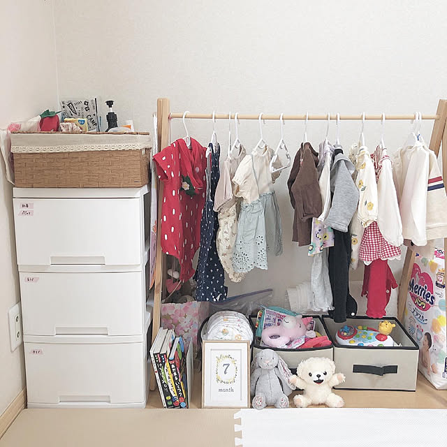 おしゃれなベビークローゼット👶👗』 お洋服は取りやすい&見やすいようにハンガーにかけて収納するママが多いです✨ニトリやイケアなどのベビー服の収納アイテムにも注目! photo by @620.602 @mogumogumilk@piko_baby2020 @shiro.k.r 素敵なお写真。