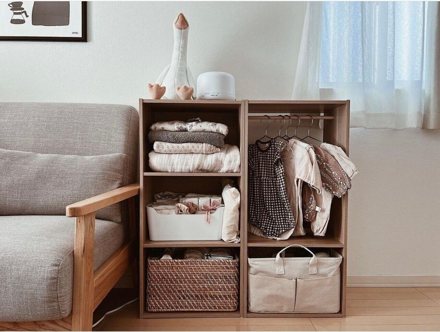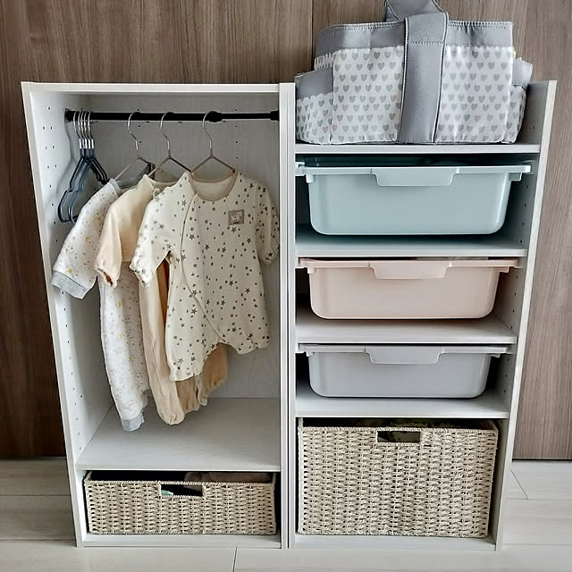 ベビークローゼットベビー服収納 準備したのがだいぶ前過ぎてベビークローゼットの中身を見直してみました😂絶賛予定日超過中 我が家はクローゼットに赤ちゃん用品を収納することに😌ベビーワゴン にしなかった理由・移動したいのはオムツと一部のケア用品だけ。