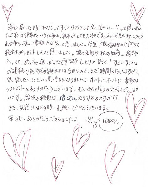 彼氏の20歳記念に贈った誕生日プレゼント!オリジナル絵本ギフト専門店 ありがとう。