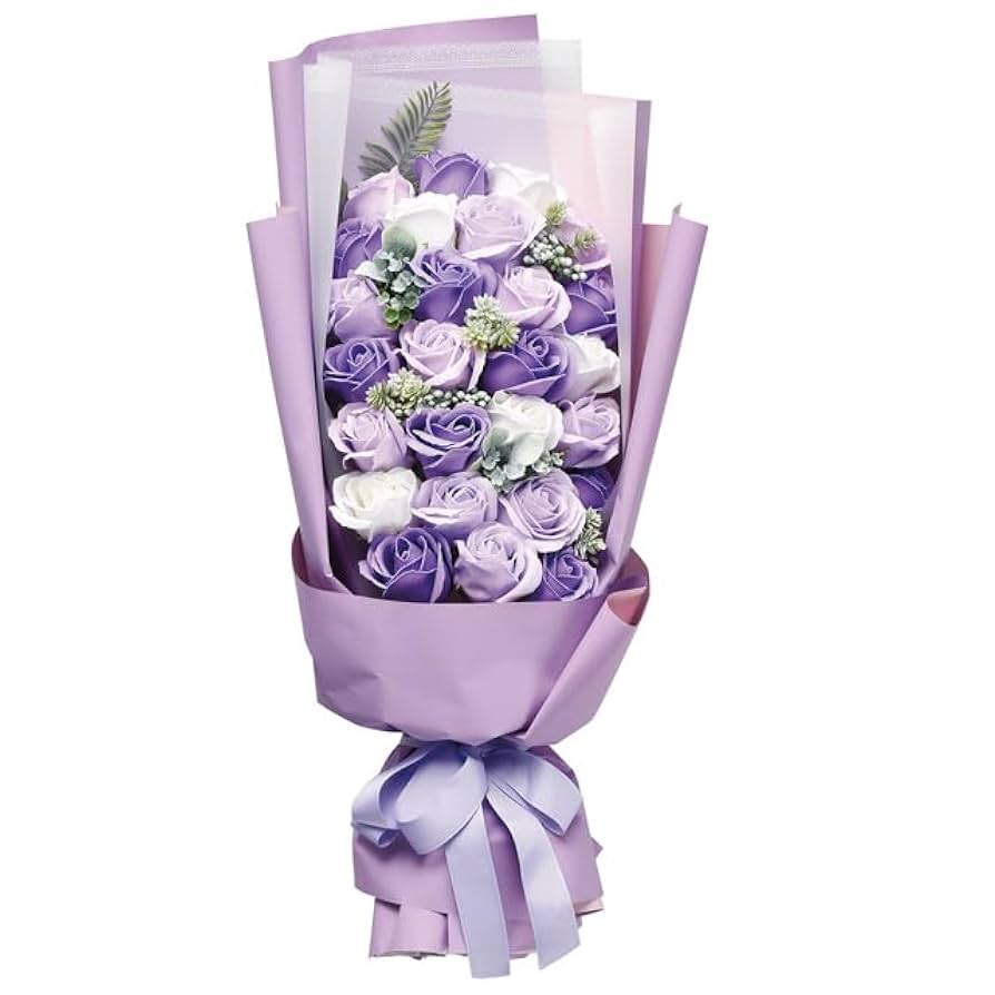 Amazonフラワーギフト「花言葉シャボンフラワーソープブーケ L 」せっけん ソープフラワー 母の日 お誕生日 花束 薔薇 ギフトパープル GM-4202花束 オンライン通販。