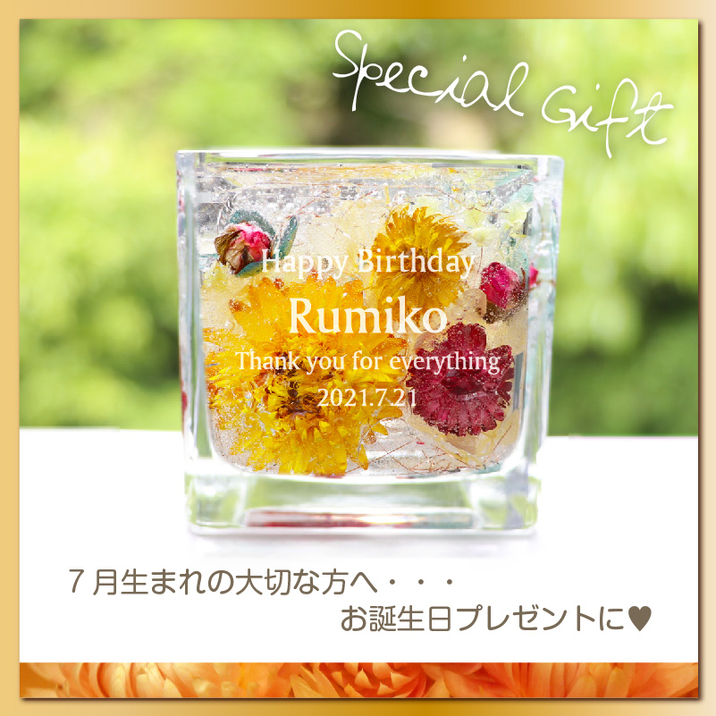 公式 記念屋 atelier-Ryokuei7月誕生日 誕生月キャンドル 誕生花 7月 ヘリクリサム プリザーブドフラワー 花言葉 花プレゼント誕生日 結婚祝い ギフト。