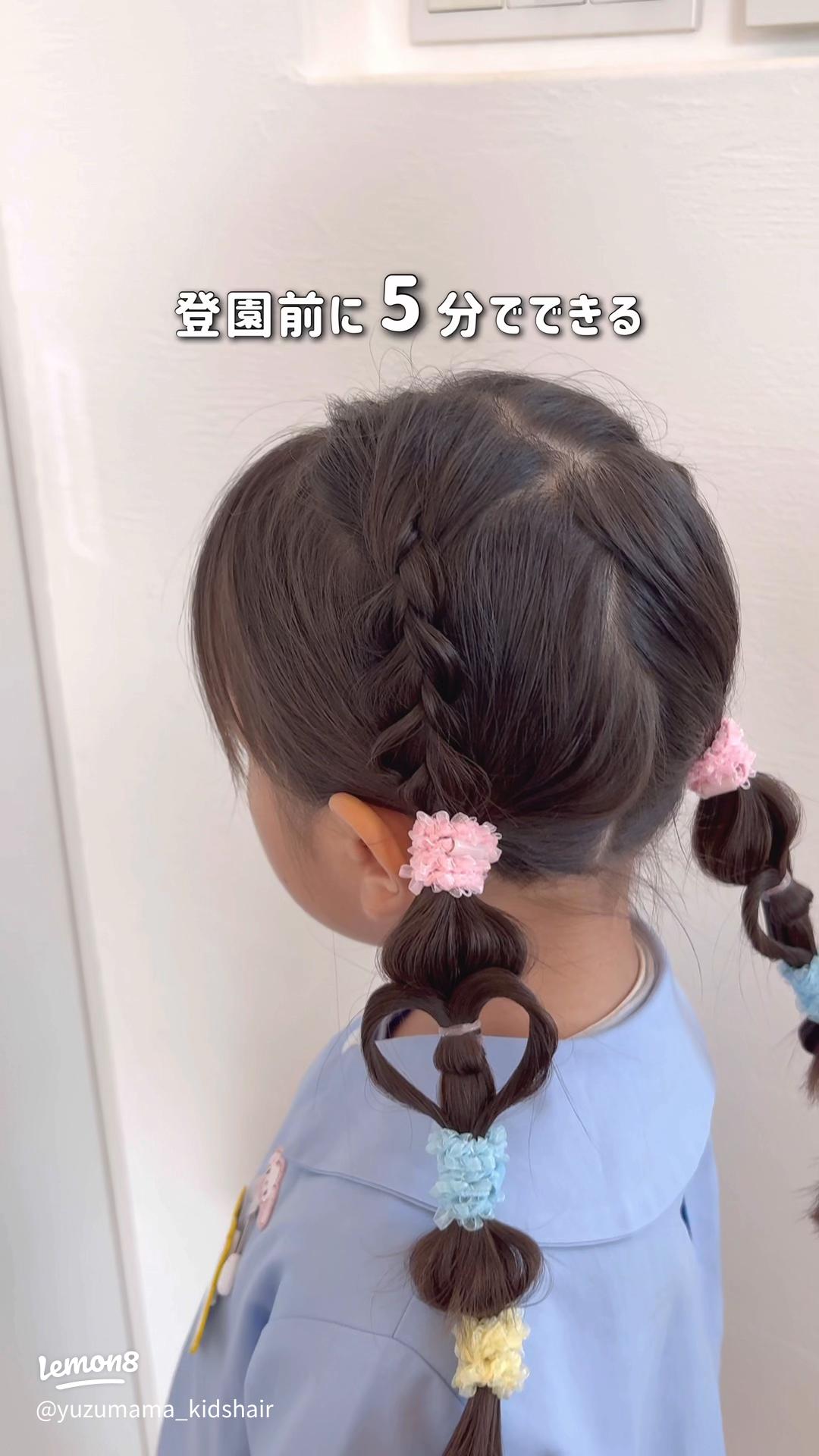 簡単&かわいい!子供にぴったりのゴムだけリボンヘアアレンジ♡。